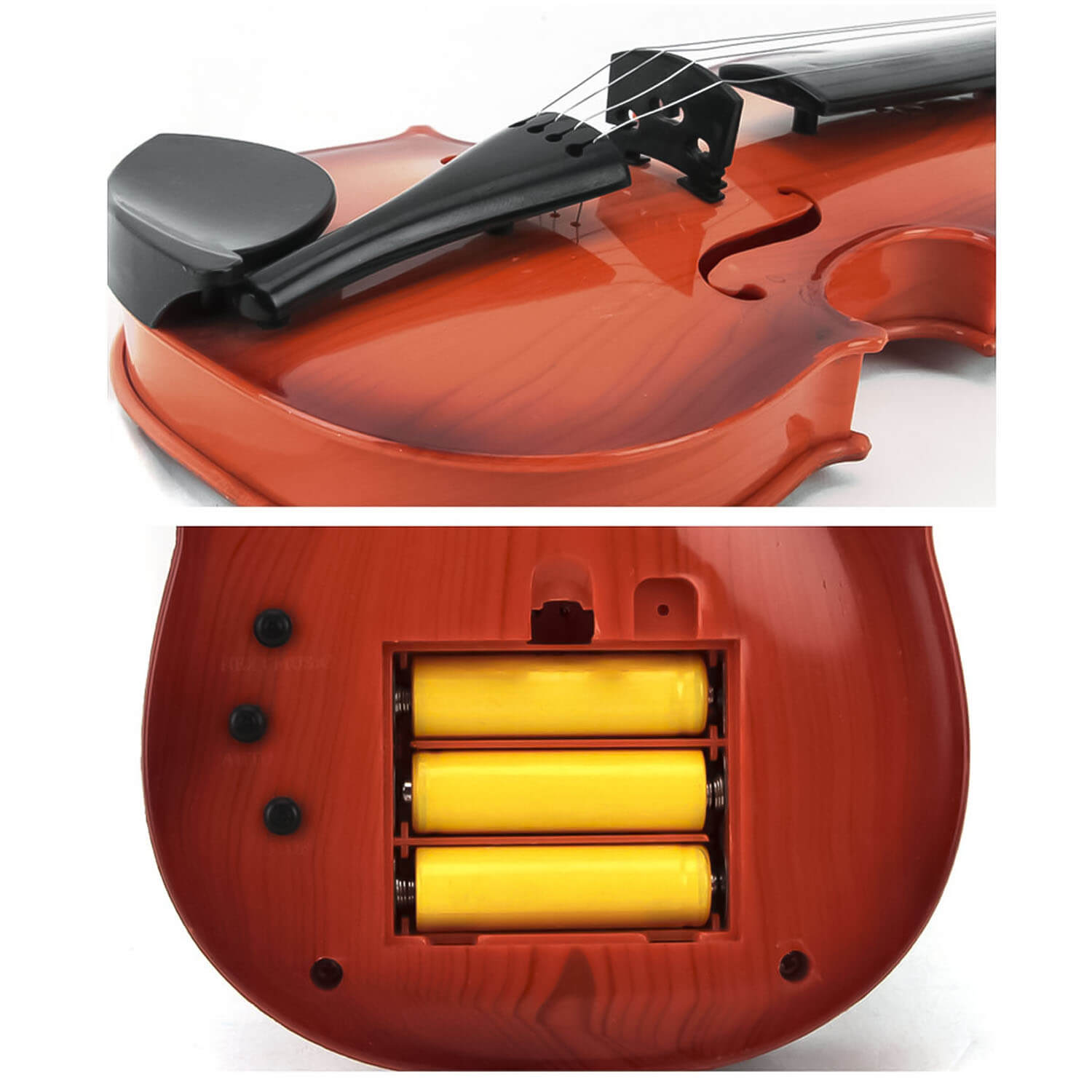 Музыкальная игрушка — это не только игрушка для развлечения. Занятия с ней научат ребёнка соотносить свои действия с результатом и контролировать движения ручек, а также разовьют чувство ритма и помогут раскрыть творческий потенциал малыша. Можно играть на скрипке с помощью смычка или включить музыку и имитировать игру.