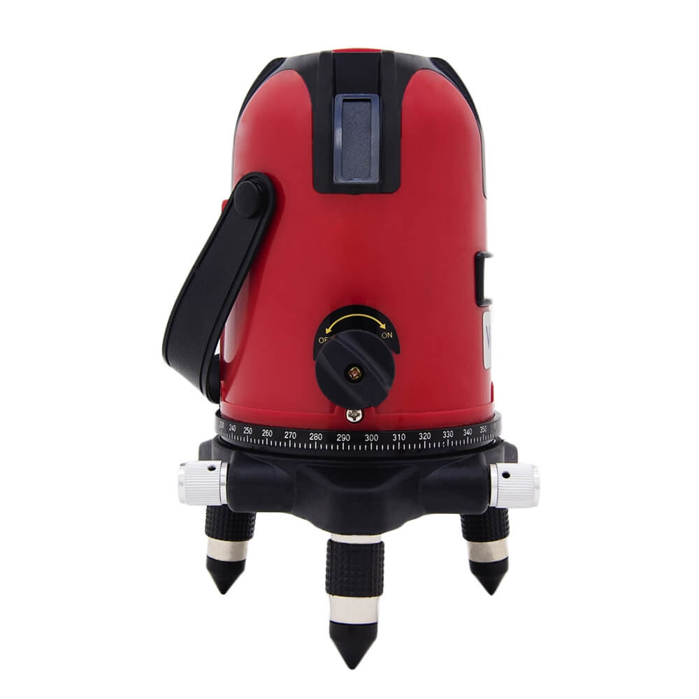 Высокоточный лазерный уровень с двумя красными лучами – вертикальным и горизонтальным. Отклонение лучей от вертикали и горизонтали не превышает 1 мм на 7 метров. Предусмотрено самовыравнивание лучей в пределах +/-3 градуса. Время выравнивания - не более 3 секунд. Рабочее расстояние - до 20 метров. На корпусе имеется резьба 5/8 дюйма для крепления прибора к штативу. Питается уровень от литиевых батареек формата АА. Время непрерывной работы - до 4 часов.